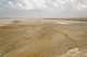 Day-trippers walking on the exposed tidal flats below Mont Saint-Michel at low tide