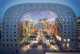 The ceiling of the Markthal is illustrated with a digital printed artwork measuring 11.000 m² (two football fields in total).